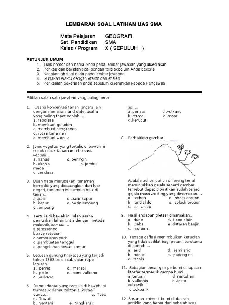 Contoh soal geografi kelas 10 sma/ma/stm dan smk semester 1 & 2 pg dan essay.